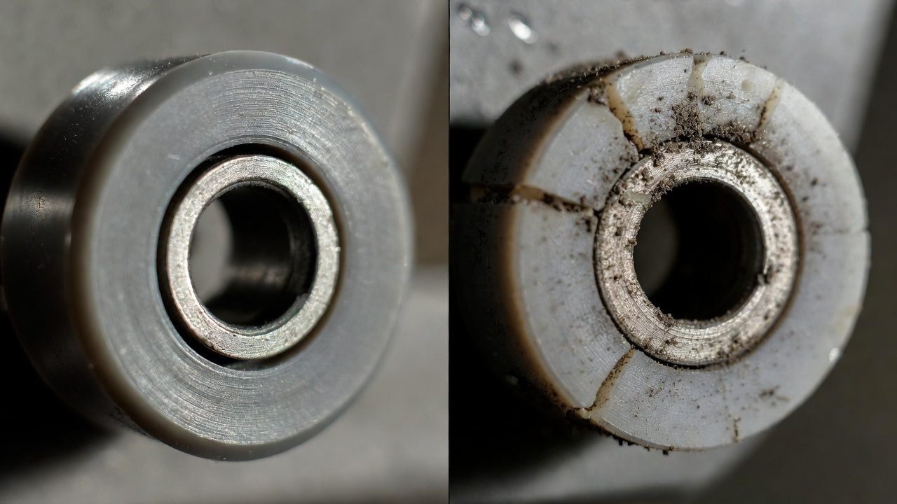 Rayları temizledikten sonra sürgülü bir cam kapı hala inatçı geliyorsa, nadiren "sadece sıkı" olur. Çoğu durumda, silindirler aşınmış, düz benekli veya tutukluk yapmaya başlamış durumda; özellikle de kapının arkasında yıllarca günlük kullanım varsa.